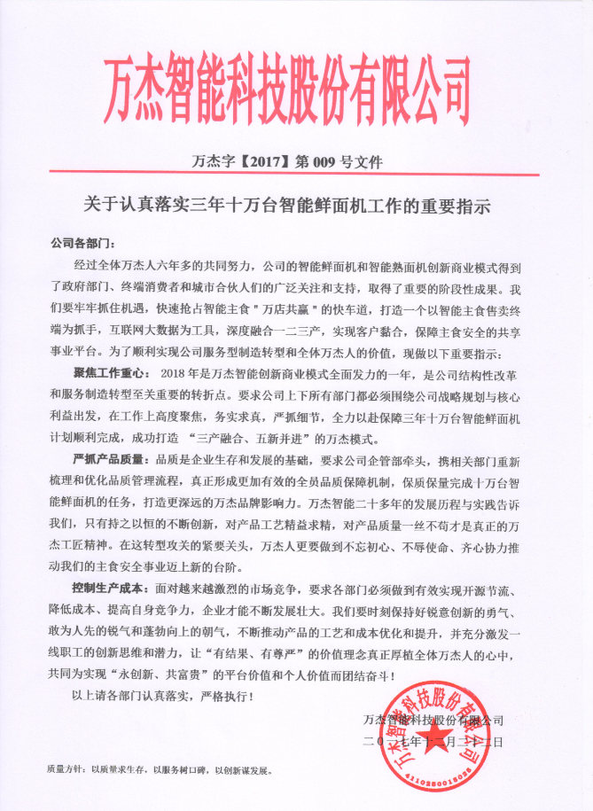 當前位置: 首頁 新聞資訊 公司動態 關于認真落實三年十萬臺智能鮮面機工作的重要指示