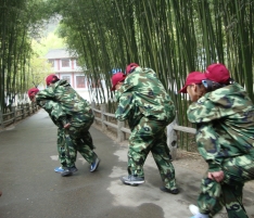 坎坷人生路:要求是兩人一組,一人扮演啞人,另一人把眼睛蒙住,扮演盲人。兩人互幫互助走完一段坎坷崎嶇的山路。由下樓、上坡、水泥路、荊棘叢、急轉(zhuǎn)彎、翻溝、過草地等障礙組成。整個過程中所有隊員都要嚴(yán)格要求自己、絕對服從教練、謹(jǐn)遵游戲規(guī)則,無論遇到什么困難都堅守“全力以赴”的承諾。 活動開始,一個個“盲人”被“啞人”引領(lǐng)著,通過各種障礙物,“啞人”們盡職盡責(zé)的拉起“盲人”的手,有時挽起胳膊,兩只手環(huán)繞著對方,有時背起對方,有時抬起對方的腳,甚至自己在地道前面爬一段,還要回頭盡心的保護(hù)對方,走過坎坷之路。當(dāng)拓展進(jìn)入了尾聲,隊員們用愛把搭建人橋的幾位成員圍成圈包圍起來的時候,大家久久不愿松開懷抱,所有情感都化為淚水,甚至還有的同伴從zui初的默默流淚到zui后的失聲痛哭!這盡管只是一場游戲,但它像是人生的縮影,讓每個人都觸動了心靈! 此項目心得體會:在我們生活中,無時無刻也未曾離開過他人的幫助,父母賦予我們?nèi)浚陆o予理解和幫助,同學(xué)們真誠的友愛和攙扶,我們其實(shí)生活在一個充滿愛的大家庭中,學(xué)會堅強(qiáng)、學(xué)會合作、懂得感恩。雖然這個項目在全體隊員的“謝謝”聲中結(jié)束了,但心存一份真誠和善意,學(xué)會感恩給同學(xué)們帶來的是終身的財富。