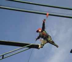 高空斷橋:在距離地面8米的高空搭起了一座獨(dú)木橋,而這個橋的中間卻是斷開的,間距1.2米-1.4米,要求每個隊員爬上8米的高空后,在空中躍起,從橋的這側(cè)跳到另一側(cè), 雖然身上掛滿了安全保護(hù)措施,但在高空跳躍,每個人都產(chǎn)生了或多或少的恐懼感,從爬上去站到高空已是一次極大的考驗,從高空躍到對面更是一次心理的挑戰(zhàn)。有的同伴從滿臉通紅到面色蒼白,有的戰(zhàn)戰(zhàn)兢兢不敢站立,有的站了許久不敢躍起,還有的上去之后直叫:“我有恐高癥!是真的……”在隊長的帶領(lǐng)下,我們?yōu)槊恳粋參訓(xùn)的隊員“加油”,目送他們一個一個爬上搖搖晃晃的高桿,然后不斷呼喊他們的名字,每完成一個步驟都熱烈地鼓掌高呼。結(jié)果,全隊20多名隊員都順利完成了這項訓(xùn)練,zui后大家用熱烈的掌聲慶賀自己的成功和勝利。 此項目心得體會:表面看起來很難的事,其實(shí)并沒有想象中那么可怕。在工作、生活中,遇到困難并不可怕,怕的是失去解決困難的勇氣和信心!心理的障礙是zui難逾越的,我們?nèi)绻蔀閺?qiáng)者,首先就必須挑戰(zhàn)自己的恐懼感,當(dāng)我們豁出去一搏,勇敢地跨出一小步,也許就能抓住屬于自己的機(jī)會,實(shí)現(xiàn)人生一大步的跨越。