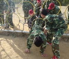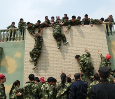 畢業(yè)墻:每個人都要翻越一堵大約4米且垂直的圍墻,這又是一個必須依靠集體的力量才能完成的項目。剛開始,大家都認(rèn)為這是很難完成而且比較危險的任務(wù),估計需要半個小時,甚至一個小時才能全部通過。 通過集思廣益,我們擬定了計劃,采用“疊人墻”的方法,讓身強(qiáng)力壯的隊員作為底座,先由兩三位隊員踩在他們的肩膀,大家奮力將他們先托上高墻,然后他們在上面接應(yīng),其他同伴踩著底座同伴的肩膀,一個一個成功地翻越了高墻。整個過程歷時不過5分鐘,活動結(jié)束后,所有隊員都為自己和團(tuán)隊的精彩表現(xiàn)鼓掌、歡呼,那一刻的場面激動人心! 此項目心得體會:首先要感謝作為底座的幾位隊友,十幾個同伴踩在他們的肩膀上,汗水、沙土粘滿了衣服,肩膀被踩出紅紅的血痕。他們的奉獻(xiàn)和付出,換來了團(tuán)隊的成功。無論在工作還是生活中,只有放下自私、愿意付出、為別人著想、才能成就自己,完成目標(biāo)。