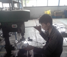 組裝車間職工宋占強,于2012年9月份加入萬杰。平常在組裝方饃機部件機頭邦時,每次安裝方饃機底腳板總是要手拿底腳板比劃著號孔,這樣下來不但工作效率低、而且還有偏差;另外在每次安裝方饃機彈簧擋片時,總是需要用手掰或用鉗子制出一個圓弧,安裝效率同樣很低,并且圓弧效果也不一致。宋占強經過認真思考與觀察,專門針對此兩道工序自制了兩套夾具,該夾具使用方便,號出來的孔位準,不僅制作出的彈簧擋片效果一致便于安裝,而且大大提高了生產效率!